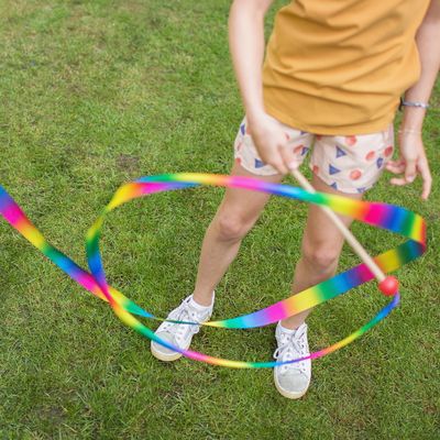 Lavinkite šokių įgūdžius kartu su šia juostele marginta vaivorykštės spalvomis. Judinkite juostelę ir ji grakščiai seks jūsų judesius.