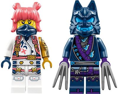 Nindzių žaislas apima 2 minifigūrėles – Soros su 2 katanomis ir kario su vilko kauke bei nagais – jaudinančiam nindzių veiksmui. Rinkinį taip pat galima konstruoti naudojant programėlę „LEGO® Builder“, kuri jums ir jūsų vaikui padovanos lengvo ir aiškaus konstravimo nuotykį.