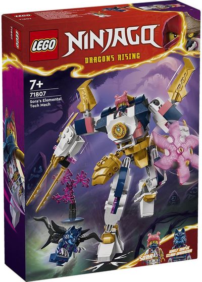 Berniukai ir mergaitės nuo 7 metų gali atkurti 2-ojo TV serialo NINJAGO® Dragons Rising sezono istorijas su nuotykių žaislu „Soros stichijos mechaninis robotas“ (71807). Šaunus robotas turi lanksčias galūnes, kurias kraipydami bei sukiodami vaikai galės nustatyti įspūdingas kovos pozas, didelį kardą, besisukančius ašmenis ir kabiną nindzės minifigūrėlei.