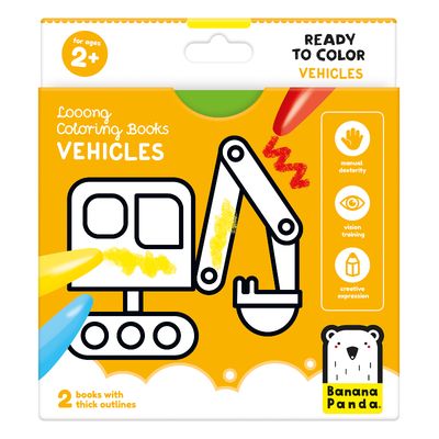 Spalvinimo kortelės BANANAPANDA Looong Coloring Books: Ready to Color Vehicles 2 +