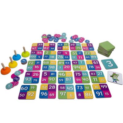 Pakuotėje rasite: 25 stalo korteles, 10 numerių kortelių, 20 krokodilo kortelių, 46 monetas, 4 figūrėles.