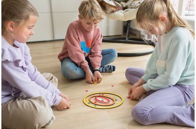 Medinis arkadinis žaidimas Tiddly Winks. Didelis blusų žaidimo rinkinys. Arkadinis žaidimas, kurio dėka vaikas lavina koncentraciją, kantrybę, koordinaciją ir tikslumą. Didelis privalumas – papildomi dideli mediniai lankeliai ir centrinis pagrindas. Užfiksuokite, nusitaikykite ir įmuškite. Įsitikinkite, kad jūsų blusa nepatenka už geltonojo lanko. Jei blusa atsitrenkia į lanką, gausite 1 papildomą tašką. Daug juoko ir džiaugsmo!
