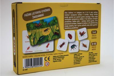 tik vienoje pusėje. Visi šie vabzdžiai aptinkami Lietuvoje. Tad žaisdami šį
