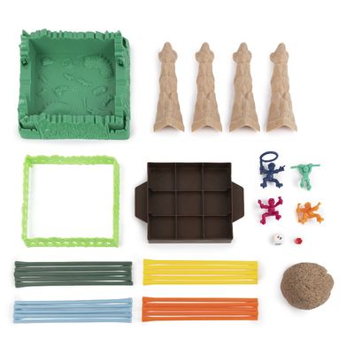 Žaidimą sudaro: žaidimo lenta, padėklas, 20 lazdelių, kinetinio smėlio maišelis, išpirkimo rubinas, 4 figūrėlės ir kauliukas, instrukcijos.
