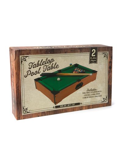 Klasikinis stalo žaidimas TABLE TOP POOL TABLE. Šiame kompaktiškame rinkinyje rasite viską, ko reikia, kad galėtumėte iškart žaisti.