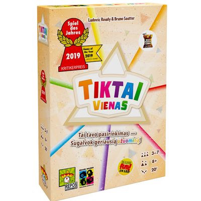 TIKTAI VIENAS yra kooperacinis vakarėlių stalo žaidimas, kurio metu visi kartu padeda vienam, žodį spėjančiam žaidėjui, atspėti slaptą žodį, užrašydami užuominą ant savo stovelio. Būkite originalūs ir laimėkite! Tai žaidimas pelnęs „2019 Spiel des Jahres“ apdovanojimą.