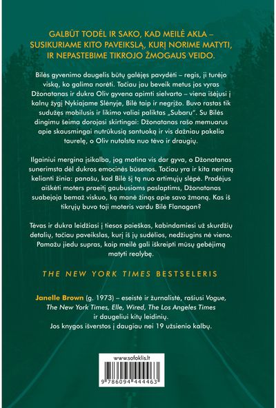 Bilės gyvenimo daugelis būtų galėjęs pavydėti – regis, ji turėjo viską, ko galima norėti. Tačiau jau beveik metus jos vyras Džonatanas ir dukra Oliv gyvena apimti sielvarto – viena išėjusi į kalnų žygį Nykiajame Slėnyje, Bilė taip ir negrįžo. Buvo rastas tik sudužęs mobilusis ir likimo valiai paliktas „Subaru“. Su Bilės dingimu šeima dorojasi skirtingai: Džonatanas rašo memuarus apie skausmingai nutrūkusią santuoką ir vis dažniau pakelia taurelę, o Oliv nutolsta nuo tėvo ir draugių.