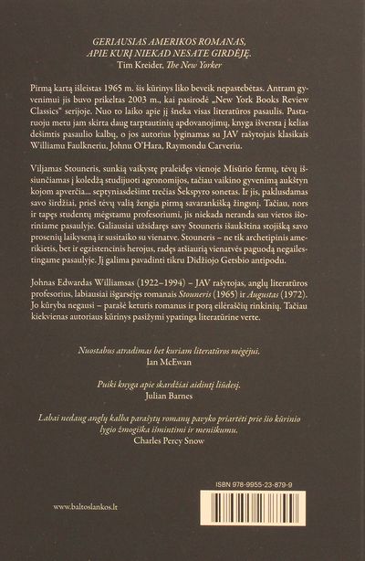 Johnas Edwardas Williamsas (1922–1994) – JAV rašytojas, anglų literatūros profesorius, labiausiai išgarsėjęs romanais „Stouneris“ (1965) ir „Augustas“ (1972). Jo kūryba negausi – parašė keturis romanus ir porą eilėraščių rinkinių. Tačiau kiekvienas autoriaus kūrinys pasižymi ypatinga literatūrine verte.
