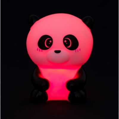Naktinė pandos formos lempa, palaipsniui keičianti šviesą 4 skirtingomis spalvomis: violetine, raudona, žalia ir mėlyna.