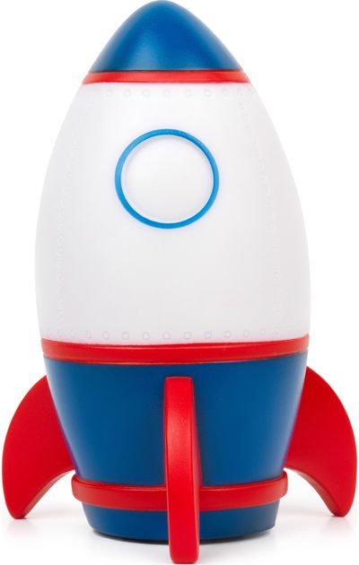 Naktinė raketos formos lempa, palaipsniui keičianti šviesą 4 skirtingomis spalvomis: violetine, raudona, žalia ir mėlyna.