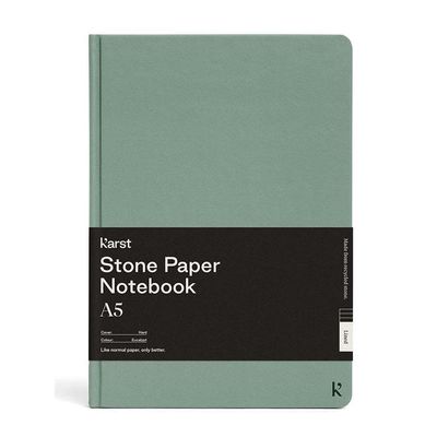 Karst Stone Paper A5 formato užrašinė kietu viršeliu yra pagaminta iš aukštos kokybės, tvaraus ir perdirbamo akmens popieriaus, kuris yra lygesnis, ryškesnis ir patvaresnis nei tradicinis popierius. Karst akmens popierius gaminamas tokiu būdu, kuriame nenaudojama medžių, vandens ir nesukuriama jokių atliekų. Ši unikali, aplinkai draugiška užrašinė yra be rūgščių, ryškiai baltos spalvos ir atspari vandeniui, pasižyminti aukščiausios kokybės išvaizda ir pojūčiu. Itin lygi puslapių tekstūra suteikia daug komforto rašant. Jūsų patogumui užrašinė turi kišenėlę palaidiems lapeliams bei skiriamąją juostelę.