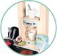 ● Žaidimo funkcijoms pagerinti pridedami 25 priedai, tokie kaip, indai, šakutės, kavos kapsulės, puodai ir pan.