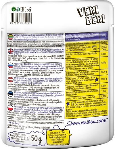 Vaisinės mėlynių juostelės VERI BERI, 50g