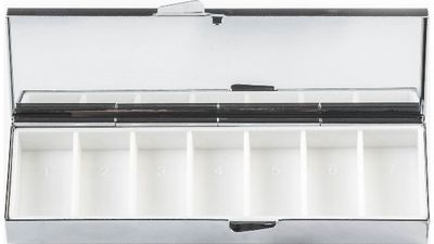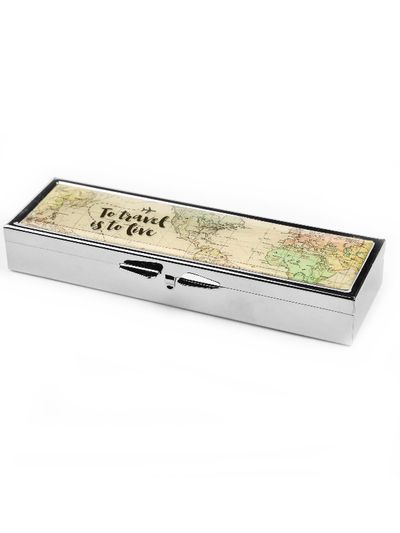 Kelionių tematika dekoruota vaistų dėžutė, turinti skyrelius septynioms savaitės dienoms. Nepaprastai patogus daiktas kelionėse.