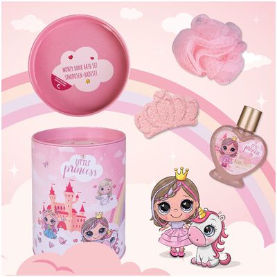 Vonios rinkinys LITTLE PRINCESS taupyklėje (vonios putos+vonios burbulas+kempinė ), 80ml+50g+10g