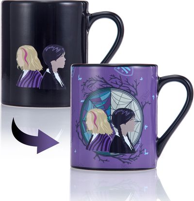 WEDNESDAY Puodelis su termo paveikslėliu – Trečiadienė ir Enida
