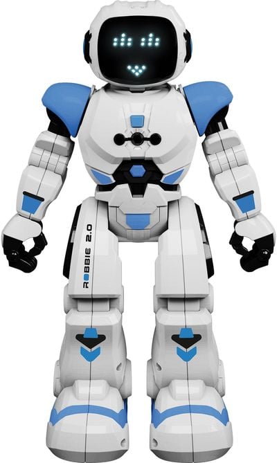 Naujos kartos robotai jau čia! Susipažink su robotu ROBBIE 2.0, kartu su juo smagiai leisk laiką ir mokykis programuoti! Robotą programuok ir valdyk nuotolinio valdymo pulteliu arba gestais – tokį valdymo būdą užtikrina technologija „Smart Control“. Gali užprogramuoti iki 50 roboto veiksmų, 2 judėjimo režimus (ėjimas arba važiavimas), 2 greičius, daugiau kaip 20 funkcijų, šokį ir 20 veido išraiškų. Robotas turi daugybę išmaniųjų jutiklių ir garsų, kurie leis pasinerti į įdomų ir jaudinantį robotikos pasaulį, pažadins entuziazmą ir padės išlaisvinti vaizduotę. Programuok, šok, juokis ir žaisk kartu su ROBBIE 2.0, kurį gali valdyti rankų judesiais! Robotas įkraunamas USB krovikliu.