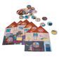 Rinkinyje yra 6 kartoniniai namai, 36 apvalios detalės, 1 maišelis.