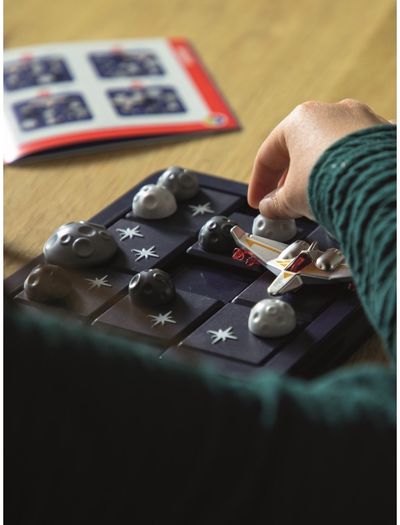 Sudėkite 8 detales taip kaip nurodyta užduotyje. Slinkite detales vertikaliai ir horizontaliai, kad padėtumėte erdvėlaiviui pasprukti. Asteroidas ir erdvėlaivis negali apsikeisti vietomis. Išspręsite užduotį kai erdvėlaivis galės išskristi iš žaidimo lauko.