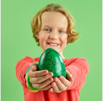Įmeskite kiaušinį į dubenį vandens ir stebėkite, kaip dinozauro kūdikis išsirita iš kiaušinio ir pradeda augti.