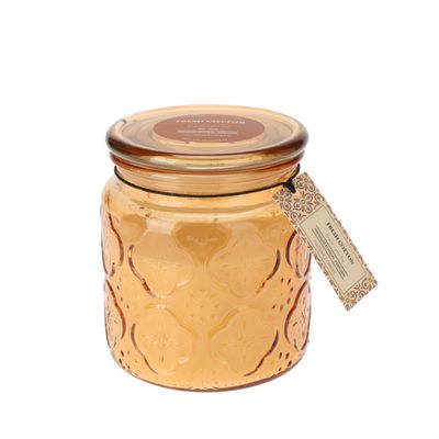 Kvepianti žvakė stikliniame indelyje.